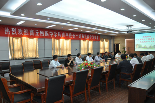 院领导与商丘回族中学校领导在行政楼前合影留念