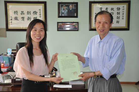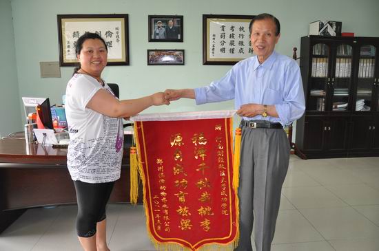 最后,张院长代表学院接受了王喆经理和闫宝芝经理分别代表公司向学院赠送的锦旗和感谢信。