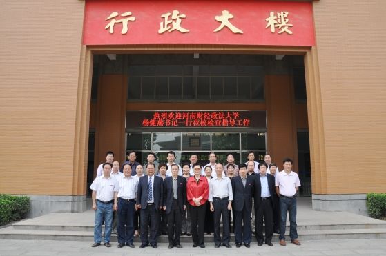 5月24日上午,河南财经政法大学党委书记杨健燕、党委副书记赵大蕻、党办主任华小鹏一行3人莅临威尼斯官网检查指导工作。威尼斯官网张平之院长、徐金安书记、赵亚宏副院长、潘德明副书记/副院长、吴泽强副院长以及一级主管、各系党总支书记等在校门口迎接。