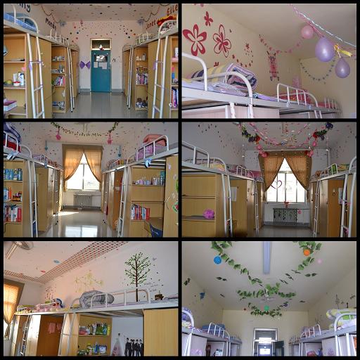 本次装饰大赛男生寝室以整洁为主,女生寝室以装饰为主,同时,各系针对自己本专业特点,对本系所在宿舍楼的公共区域进行装饰。宿管科组织各系行政秘书对各系上报的文明宿舍逐一进行了打分评比,最终评选出了阳光之家、温馨之家和和谐之家30个,公区的装饰方案也充分体现了各系部特点,达到了以评促建的目的。