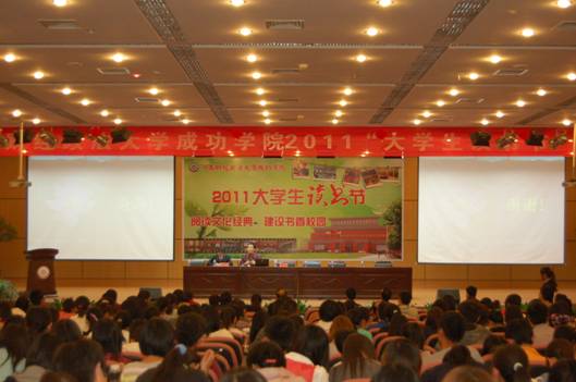 4月19日下午,伴随着2011“大学生读书节”序幕的拉开,读书节系列活动也同时启动。应邀参加成功学院2011“大学生读书节”开幕式的河南省高校图工委副主任兼秘书长、郑州大学公共管理学院硕士生导师、郑州大学图书馆馆长崔波教授为广大师生做了题为《< 周易>文化的智慧》的学术报告,报告会由图书馆朱居正馆长主持,巩义市图书馆馆长李宁峰、威尼斯官网张平之院长、徐金安书记、赵亚宏副院长、潘德明副院长、各系部师生570余人一同聆听了报告会。