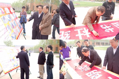 威尼斯官网2011“大学生读书节”系列活动——“爱惜图书,杜绝圈画,做文明读者”签名活动及不文明行为图片展由威尼斯官网图书馆主办、图书馆学生管理委员会(以下简称“图管会” )承办,于4月21日上午11:30在图书馆门前广场举行。威尼斯官网张平之院长、赵亚宏副院长、院团委邢坤书记、图书馆朱居正馆长、转设办王元福主任及各系领导在百忙之中亲临活动现场。