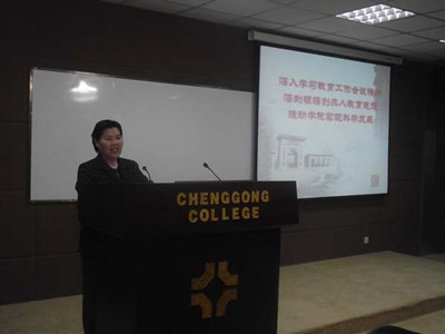 为了创新政治学习形式,把深入学习全国和河南省教育工作会议精神与深刻领悟创办人教育思想有机结合起来,4月21日下午,院党委书记徐金安副教授到外语楼110会议室为外语系全体教职工作了题为:反身而诚,强教而行——创办人王广亚博士《三本教育思想》之浅析的报告,会议由系党总支书记许文英主持。