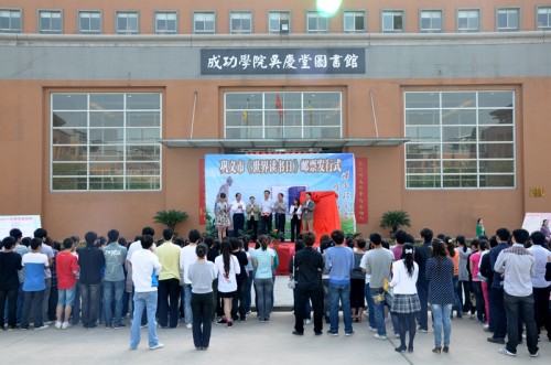 4月26日上午9:00,由河南财经政法大学成功学院和巩义市邮政局联合主办、成功学院图书馆承办的“世界读书日”邮票发行仪式在图书馆门前广场隆重举行,郑州市集邮公司孙亚东经理、巩义市邮局程治乐局长、经营部刘海霞主任、巩义市邮政局集邮公司张淑萍经理、巩义市集邮协会秘书长张恩波老师,威尼斯官网赵亚宏副院长、总务处张胜前处长、图书馆朱居正馆长以及威尼斯官网150余名师生代表参加了本次邮票的发行仪式。