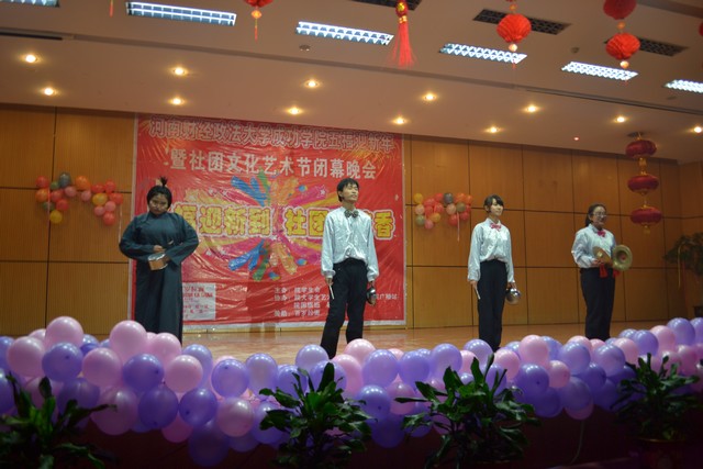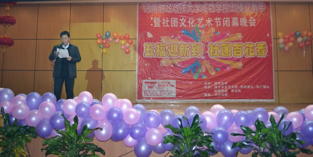 学务长兼团委书记邢坤同志首先代表院团委向本届社团文化节的成功举办表示热烈的祝贺;向精心组织并大力支持、参加本次社团文化节活动的广大师生和一年来工作在第一线的学生干部们表示诚挚的问候和衷心的感谢。他指出,学生社团是高校第二课堂的重要组成部分,是大学生开发潜能、展示自我的舞台,也是学院推进大学生素质拓展计划的一个重要载体,在学生综合素质的培养、校园文化氛围的营造、学院独特文化的传承等方面发挥着重要的作用。