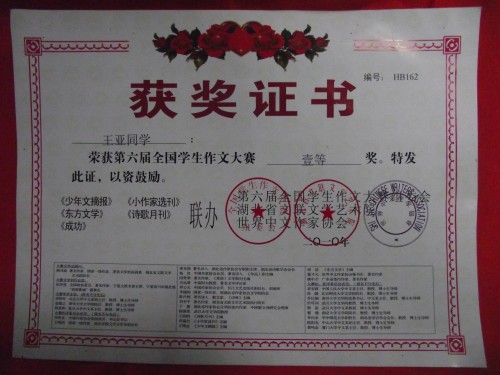 第六届全国学生作文大赛已于近日成功落下帷幕,经过大赛组委会认真评选,威尼斯官网文法系2008级汉本专业王亚同学荣获一等奖,为学院争得了荣誉。