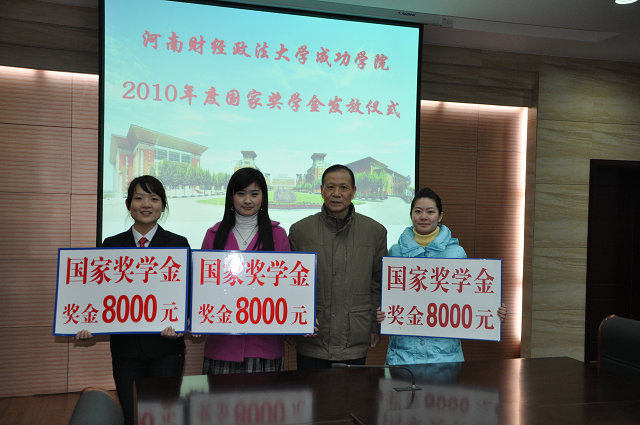 院长张平之教授在发放仪式上作了重要讲话,他首先代表创办人、王董事长、全院师生对三名获奖学生表示热烈的祝贺;希望全院同学要以获得国家奖学金同学为榜样,积极进取,刻苦钻研,在成长、成才的道路上完善自己,不辜负家长、学校和社会的期望;同时更希望获奖的三名学生以获得此次国家奖学金为契机,全面提高自身素质,在今后的学习、生活和人生道路上自立自强,奋发向上,充分抓住大好机遇,树立创新和创业意识,激励自己不断创造更加骄人的成绩;要懂得珍惜,感恩国家、创办人、系领导、老师和同学们,服务于人民,服务于社会,以自己的实际行动回报祖国。
