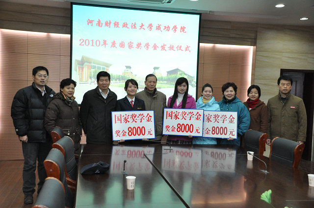 根据2010年度国家奖学金评定与管理办法相关文件的要求,威尼斯官网2010年度国家奖学金评审和发放本着公平、公正、公开的原则,经学生本人申请,各系推荐,院学生资助管理中心审核,学院研究同意,报请教育部批准,管理系唐蕾蕾同学、外语系朱绍华同学、艺术系刘倩倩同学三名同学荣获2009—2010学年国家奖学金,总金额2.4万元,每人奖励8000元。