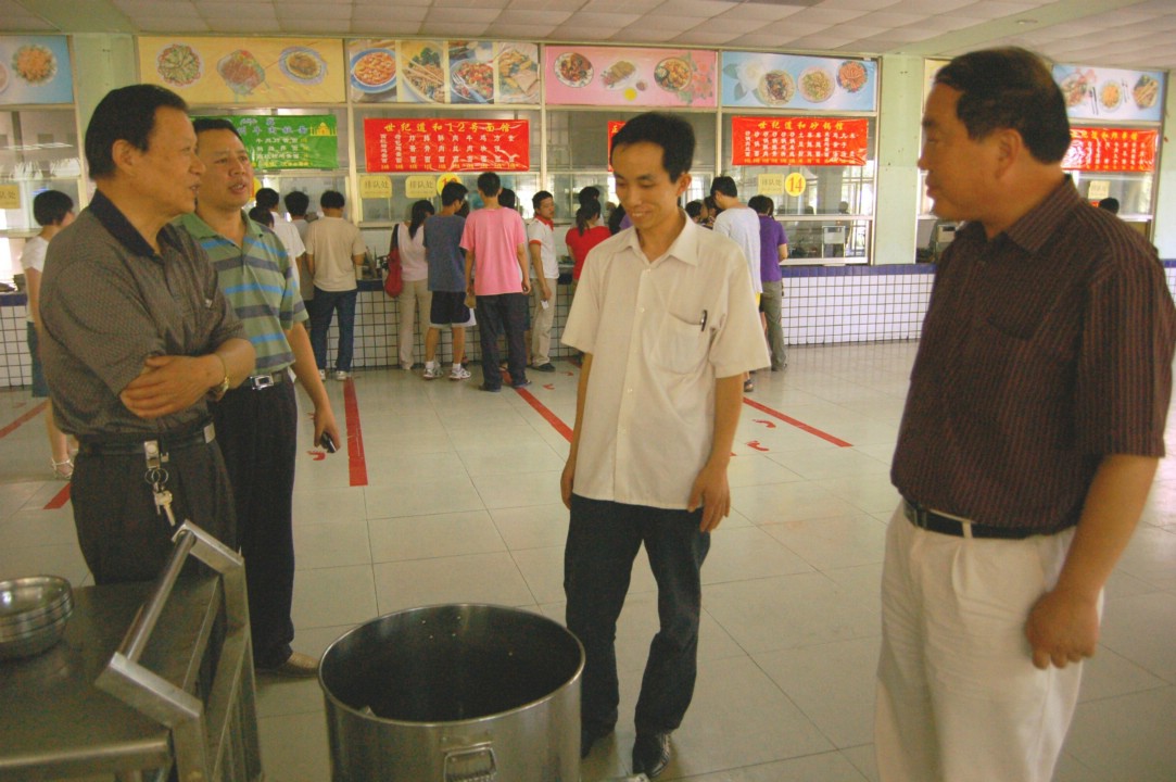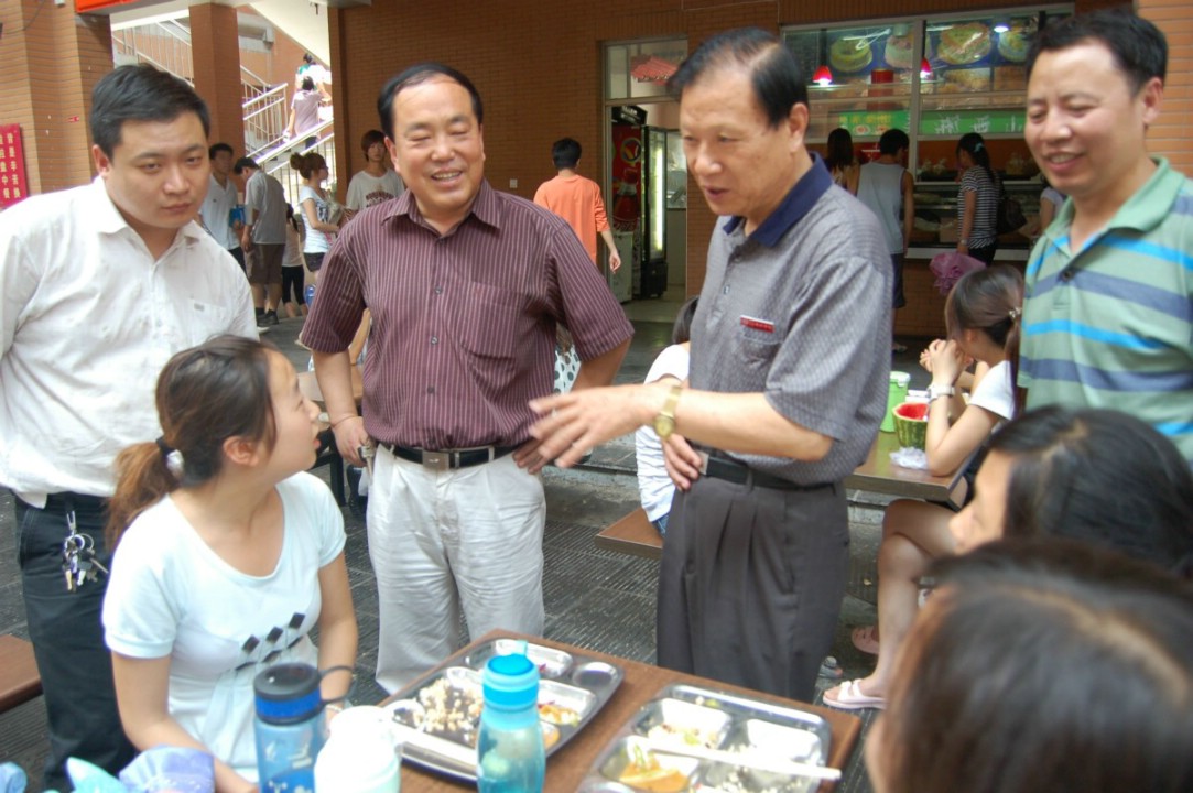 在四希饭庄,张院长和赵副院长走进一个餐厅工作间,仔细检查了工作间的卫生状况;在商业街,张院长一行向几位正在就餐的同学询问了饭菜是否可口,并嘱咐同学们饭后要喝些绿豆汤解暑;在教工餐厅,张院长和赵副院长叮嘱餐厅的工作人员,让他们自身也要注意防暑。