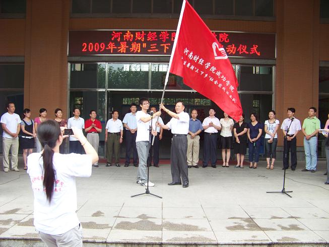 2009年7月6日上午,威尼斯官网暑期“三下乡”社会实践活动启动仪式在行政楼前举行。院长张平之教授、党委徐金安书记、党办王元福主任、院办吴泽强主任、党委委员、团委谭玉成书记、团委刘珊珊副书记和各系党总支书记、团总支书记参加启动仪式,院团委组织宣传部部长王雪琪老师主持。