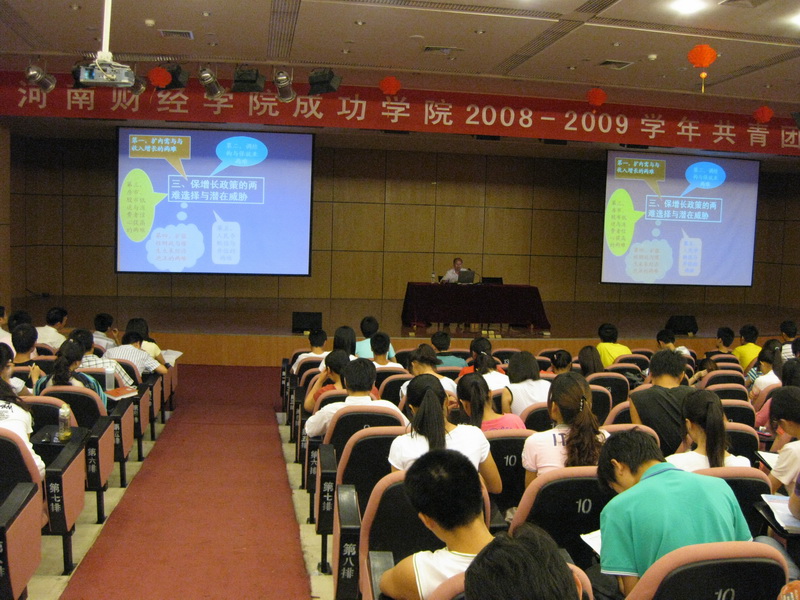 这场报告对于商学系国际经济与贸易、市场营销专业学生来说,有助于他们用专业理论知识全新地认识国际金融危机给整个经济结构造成的巨大影响,有助于他们对所学知识融汇贯通,学以致用。同时也使学生认识到,我们应紧随当今社会形势,努力完善自我,为今后的就业、创业打好基础,积极应对未来一切挑战!