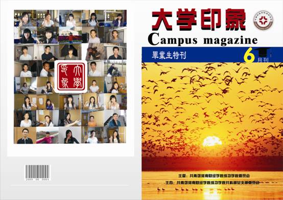 经过十几天的忙碌,由院团委主管、共科部团总支主办的杂志《大学印象》毕业生特刊于6月7日装订完成。