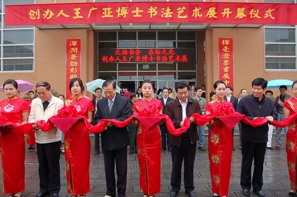 院领导张平之、张万昌、赵亚宏、潘德明等一起为此次开幕式剪了彩。开幕式结束后,在解说员的引导下,与会人员和同学们一起参观了创办人的书法作品。