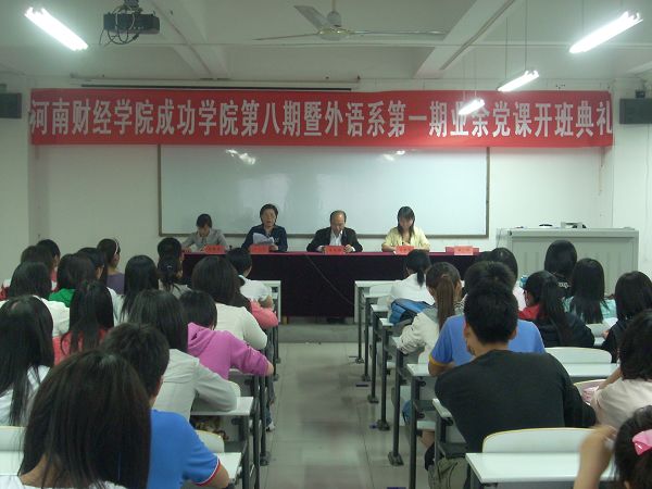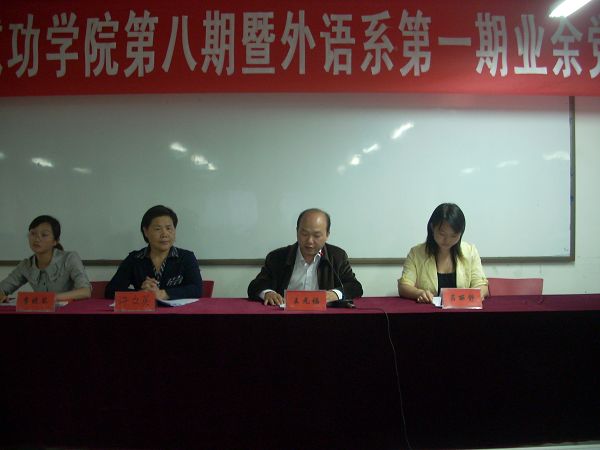 外语系第一期业余党校开学典礼于5月13日晚上6:30在3号楼201教室顺利召开。出席典礼的领导有院党委办公室主任王元福同志 、外语系党总支书记许文英同志及党总支全体委员。