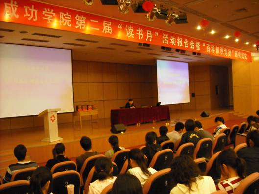 5月14日下午4:30,在图书馆国际会议厅隆重举行了成功学院第二届“读书月”读书报告会暨百科知识竞赛颁奖仪式,为本届读书月活动画上了圆满的句号。