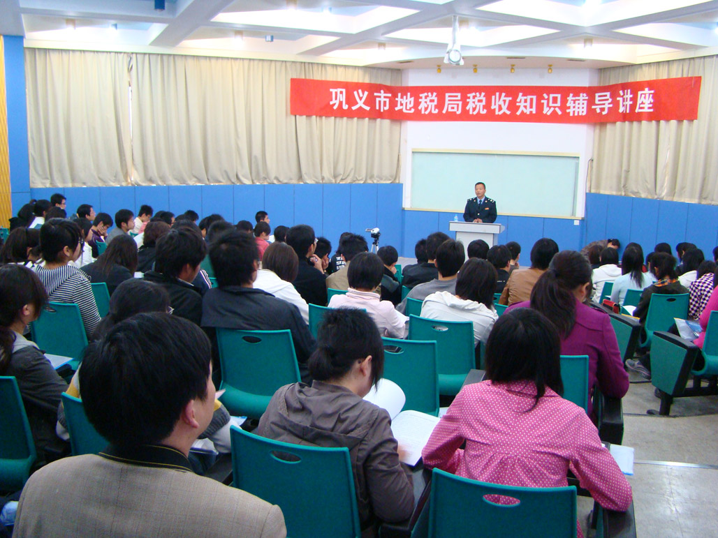 在第十八个税收宣传日之际,巩义市地税局稽查分局张瑞峰局长于4月10号下午在2号楼101教室给部分08级财务管理专业的同学作了一场关于税收的报告,不仅丰富了同学们有关税收的知识,也对大家的专业课学习起到了一定的帮助。