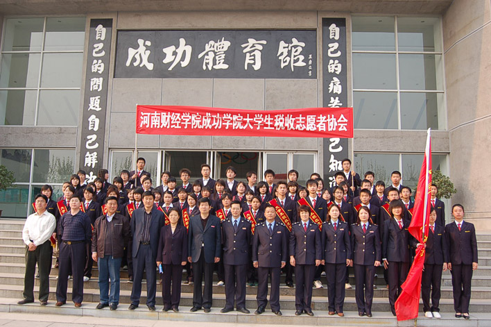 在深入学习实践科学发展观精神的指导下,为全面提高学生素质,活跃第三课堂,积极参与巩义市地税局“宣传税法,学习税法,懂法知法”活动,4月13日下午,威尼斯官网在体育馆门前隆重举行了税收协会成立暨授旗仪式。巩义市地税局李明珠副局长、地税局稽查分局张瑞峰局长等税务干部,潘德明副院长、院办公室吴泽强主任、教务处程建华教务长、学务处谭玉成学务长、总务处王宏伟总务长、管理学系李创主任、翟书记等领导出席了此次仪式。