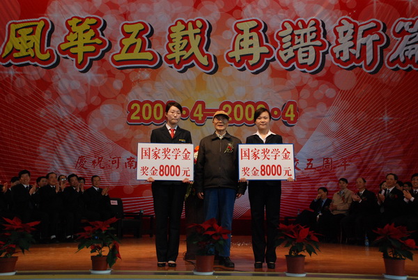 会上,创办人和张平之院长还分别为获得2008年度国家奖学金的同学和优秀教学奖的老师颁发了奖金。
