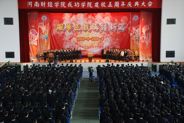 大会在雄壮的国歌声中拉开了序幕。院长张平之教授首先致词。张院长回顾了学院五年来的发展历程,总结了五年来的办学成绩,对为学院的发展殚精竭虑、呕心沥血的创办人表示了崇高的敬意,对关心和支持学院发展的各级领导以及社会各界人士表示了诚挚的感谢,并对这个孕育了成功学院的伟大的时代充满了感恩之情。