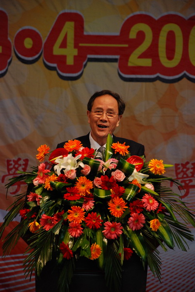 “同学们到学校来,就是四个字:做人做事。同学们在学校的四年当中,能把老师所教的和从课本上所了解的融会贯通,将来到社会上就是一个很了不起的年轻人,将来你们家庭的生活、个人的发展都没有问题,所以说我希望同学要把握时间,不要浪费,要好好地学习、用心。”创办人在大会上对同学们发表了语重心长的讲话。创办人两年前做了手术,至今身体还没有完全复原,但是创办人深感和同学们之间有割舍不断的亲情,此行不顾家人的劝阻,坚持来到学校看望同学们,令广大师生为之动容。