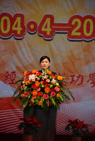 学生代表唐蕾蕾同学在大会上的发言中对母校、对尊敬的创办人和慈爱的老师们充满了感恩之情,并以浴火重生的凤凰和搏击长空的雄鹰来分别比喻母校和学生,祝福母校桃李满天下,祝愿学子们能取得更大的成绩。