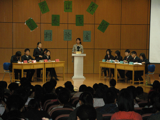 在初赛、复活赛后,08级管理学系学子组成的四支队伍脱颖而出。报告厅内座无虚席。整个比赛过程中,选手们积极踊跃地发表了各自的见解,形成良好的学术氛围。辩论技巧娴熟,比较与实证结合,幽默与诙谐并重,场内时而鸦雀无声,时而掌声雷动。