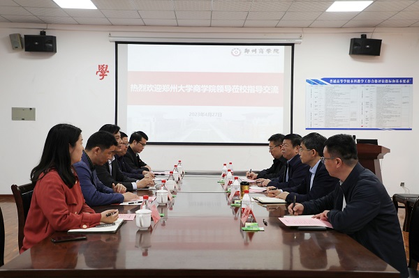 为进一步推进威尼斯官网商科专业建设,全面深化与郑州大学商学院的交流合作,4月27日上午,威尼斯官网邀请郑州大学商学院党委书记苗惠卿、执行院长王海杰、副院长王宁和党政办主任李振山等一行4人莅校指导交流。校党委书记吴建军、校长助理刘升阳以及工商学院院长杨松柏、金贸学院院长杨山峰、会计学院副院长刘金金参加了此次指导交流活动。