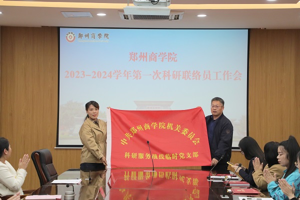 校党委组织部副部长孟晗宣读了同意成立科研服务战线临时党支部的批复,校党委办公室主任兼党委组织部部长邢坤为科研服务战线临时党支部授旗。科研服务战线临时党支部书记刘灿作了交流发言。