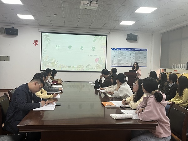 会上,李菁老师围绕“新角色适应”、“课程准备”、“课堂互动策略”及“引导学生合理使用手机”等四方面,深入浅出地分享了自己的教学实践与心得,展现了其扎实的教学基本功、专业知识储备以及专业素养。