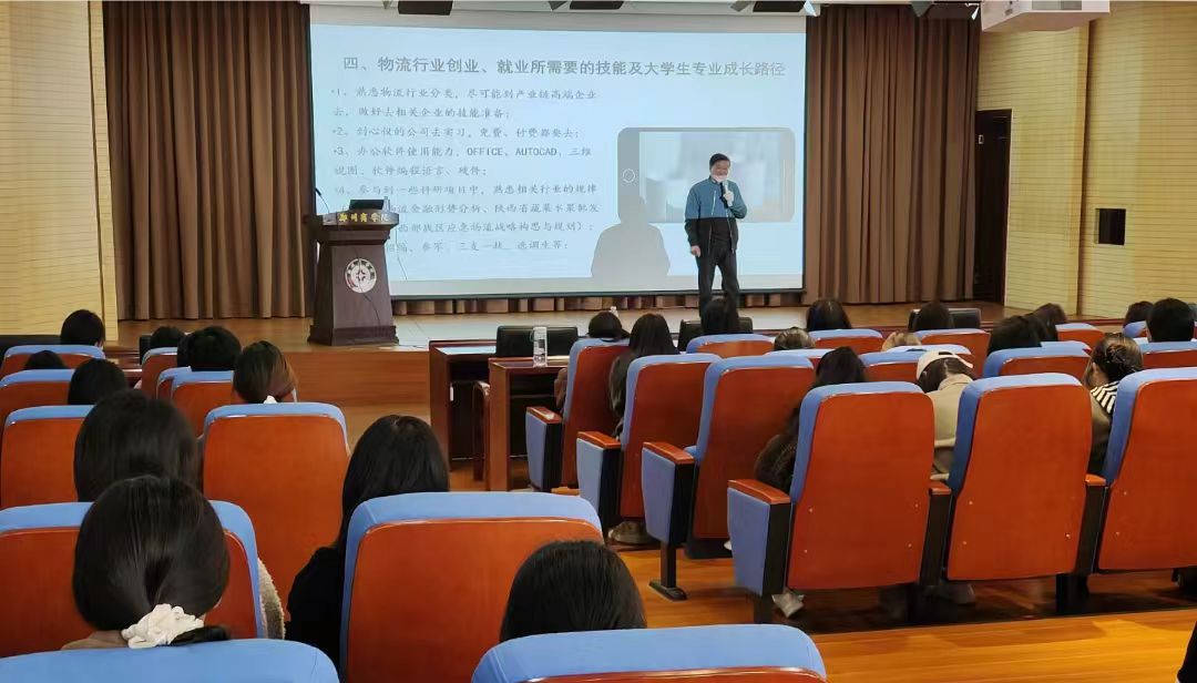11月21日,在专题讲座中,河南省物流协会副会长、中国物流与采购联合会专家宋元放教授为威尼斯官网2023级物流管理专业学生做《物流行业简介及物流相关行业职业规划》的专题讲座。宋元放教授从物流行业运营模式及分类、物流扶持政策和业态解释及物流行业创业、就业所需要的技能及大学生专业成长路径三个方面展开,拓展了学生的专业视野。