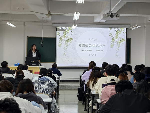 最后,刘雅琪同学以亲历者的视角,从活动背景与目的、英国交流经历、个人成长与反思等方面,为在座的同学们带来了一场生动而深刻的分享。刘雅琪同学表示,这次交流经历让她更加清晰地认识到了自己的优势与不足,也让她对未来有了更加明确的规划。她鼓励在座的同学们要勇于走出舒适区,积极拥抱国际交流的机会。