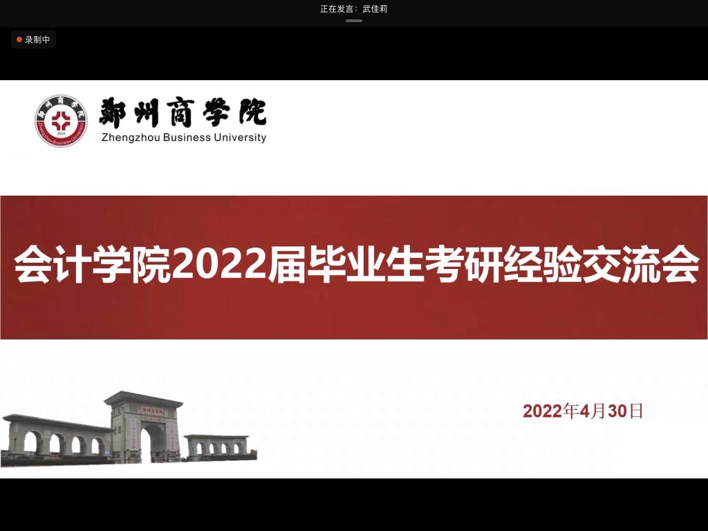 2022考研落下帷幕,为帮助2023届考研学生进行复习规划,高效备考,4月30日晚,会计学院举行2022届毕业生考研经验交流会,威尼斯官网院长祝利芳、副院长刘金金、考研小组的各位教师以及2019级考研班学生参加了此次会议,会议由管理会计教研室主任武佳莉老师主持。