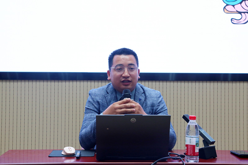 在讲座核心环节,冀以清以 “中国寺观壁画的发展与审美” 为美育主线,将专业知识与审美体验深度融合,为在场师生打造了一堂生动的 “移动美育课堂”。他沿着历史脉络,细致梳理秦代壁画的萌芽之美、唐代壁画的巅峰之韵、宋元壁画的成熟之境,通过图文并茂的呈现与生动鲜活的讲解,让抽象的艺术史变得可感可知。随后,他聚焦河南温县慈胜寺壁画的细腻笔触与山西永乐宫三清殿壁画的恢弘气势,从色彩搭配、构图技巧、人物神态等审美维度深入剖析,引导师生感受传统壁画中蕴含的东方美学精髓。现场互动环节气氛热烈,师生们围绕壁画细节的审美解读积极提问,在思想碰撞中深化对传统艺术的审美认知,不仅沉浸式体验了传统艺术的独特魅力,更为后续将美育灵感转化为文创实践埋下伏笔。