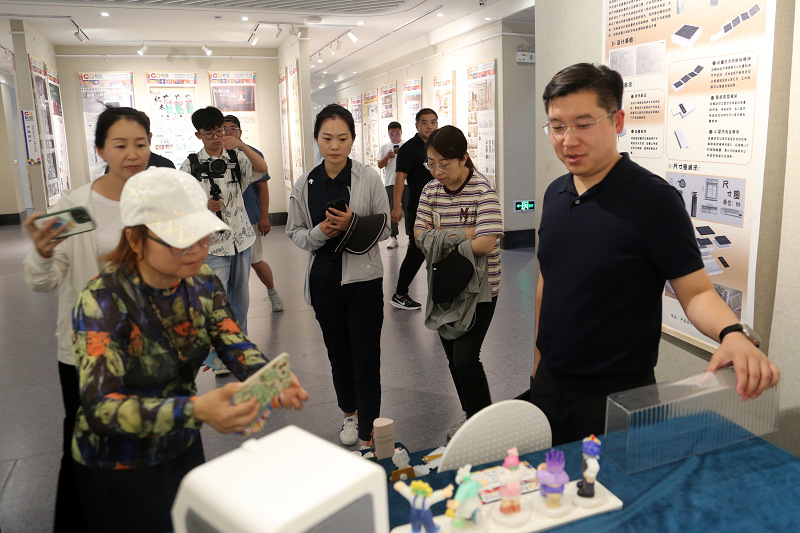 下午,来宾一行先后参观学校校史馆、学生事务服务中心众创空间,随后重点走进艺术学院毕业设计展及产教融合工作室,实地感受学院美育教学成果。在毕业设计展现场,融入永乐宫壁画元素的设计作品吸引了众人目光,从壁画纹样重构的装饰画到提取色彩灵感的服饰设计,每一件作品都展现了学生对传统美育的理解与创新。在产教融合工作室,数字化文创研发成果与校企联合开发的文旅产品原型更是让来宾眼前一亮,大家对学生将审美认知转化为实践创作的能力给予高度评价,并围绕 “毕业设计中的美育成果转化”“文创产品市场化中的审美传播” 展开深度研讨,进一步探索美育与实践、市场结合的有效路径。
