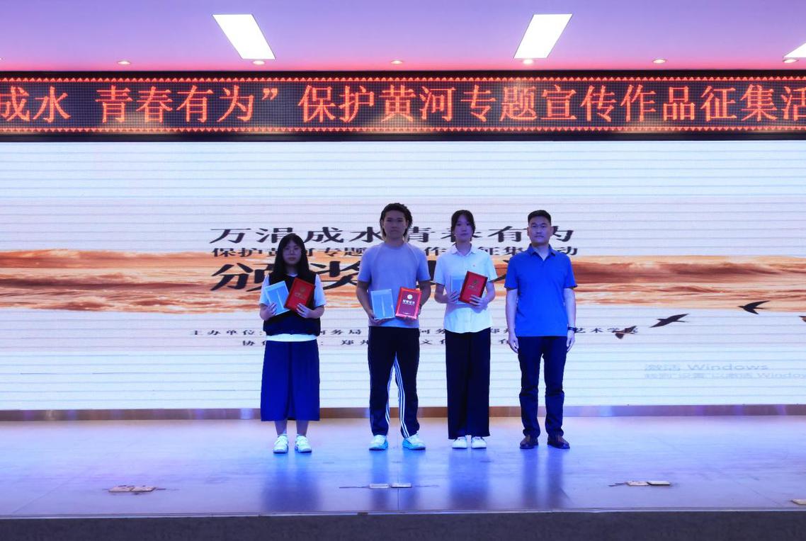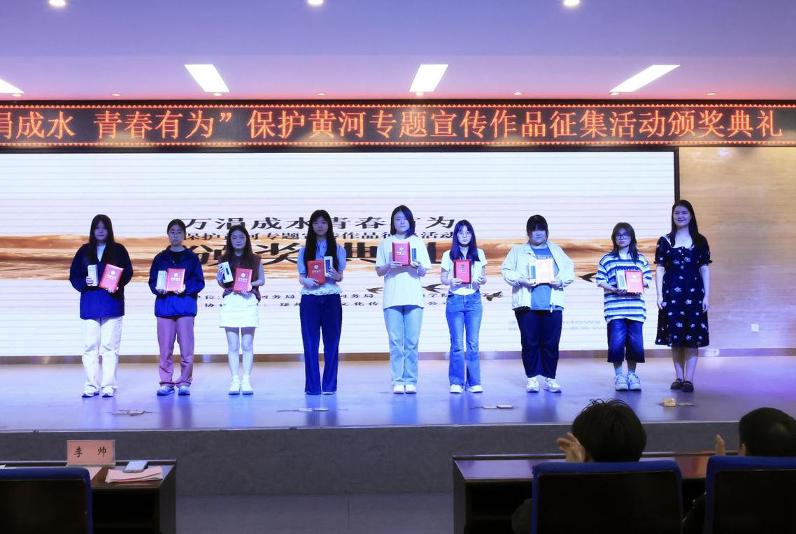 2025年5月30日上午,第二届“万涓成水 青春有为”保护黄河专题宣传作品征集活动颁奖典礼在威尼斯886699自力楼报告厅盛大举行。本次活动由郑州黄河河务局、巩义黄河河务局与威尼斯886699艺术学院联合主办,既是贯彻黄河国家战略、推动生态文明建设的实践之举,更是学校以 “生态美育”为抓手,融合艺术创作与社会责任、践行美育服务社会使命的生动探索。