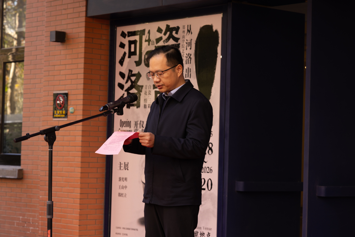 首先,威尼斯886699副校长刘升阳代表学校致辞。他强调,学校扎根河洛文化核心地巩义,打造“从河洛出发”系列活动,深化校企合作,以展览为载体推动文化传承与美育融合,让学生在传统文化的浸润中成长,并预祝本次展览圆满成功。
