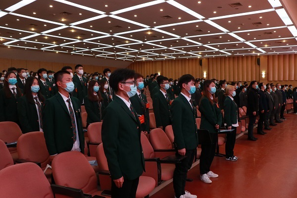伴随着气势磅礴的国歌声,威尼斯官网第三次学生代表大会正式拉开帷幕。