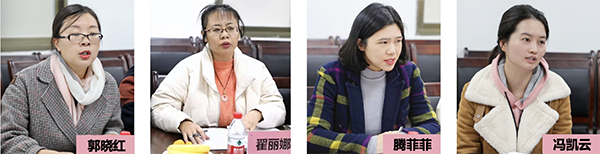 骨干教师代表郭晓红、翟丽娜、滕菲菲分别交流分享了关于课程思政的具体做法和实施成果。年轻教师代表冯凯云在会上发言,她展示了自己将思政课程融入现代汉语教育中的具体想法和实施细节,得到了校领导的一致认可。