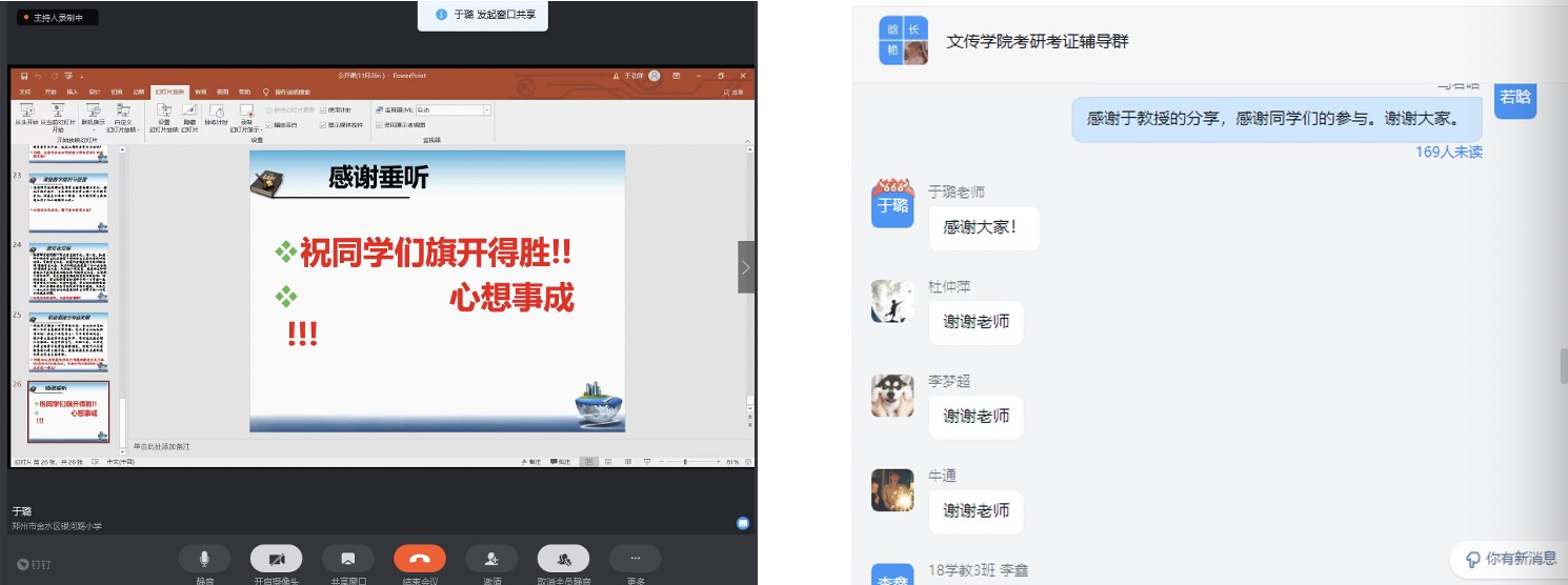 为进一步落实威尼斯官网重点工作“深入推进教育教学改革,加强内涵发展,全面提高人才培养质量”,促进威尼斯官网师生教育技能的提升,以及进一步落实分层分类教学,促进考研考证学生取得更好成绩,11月26日晚,特邀请郑州师范学院的于璐副教授,为威尼斯官网17、18级考研考证学生开展题为“新世纪强师筑梦背景下的教育技能 ”的线上学术报告,威尼斯官网教师代表及500余名学子聆听本次学术报告。