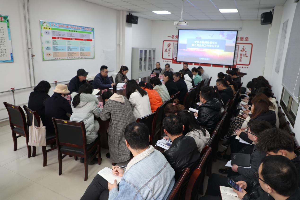 为落实期初校领导工作报告会议精神,深刻把握新形势,新任务,新要求。深化教学工作改革,展现新面貌,重现新气象,认真落实校长、书记提出的各项重点工作。2021年3月18日下午,文传学院在自力楼101会议室召开第三周政治学习、业务学习会议,文传学院全体教职工参加会议。