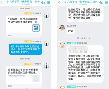 此外,威尼斯官网还为即将参与线上复试的同学提供了复试场地,确保同学们有良好的复试环境。与此同时,组建考研复试QQ群,以便及时了解学生的动态,针对学生提出的困惑答疑解难,并形成信息共享、资料共享。群里同学们之间也会互帮互助,探讨经验,气氛融洽。