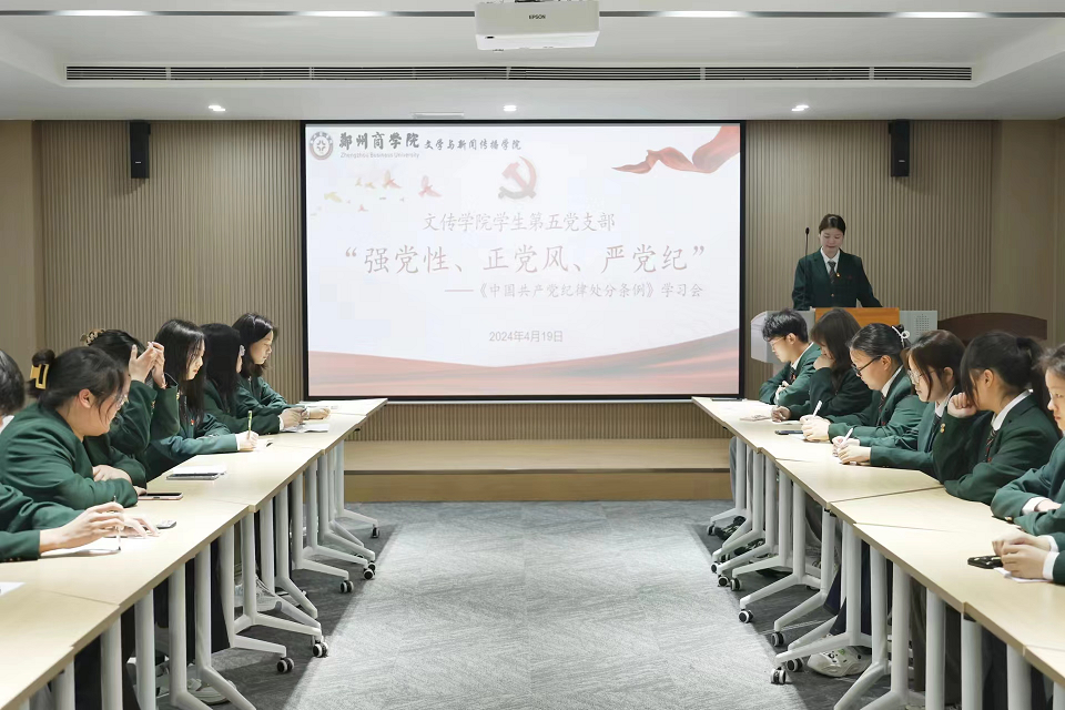 为帮助学生党员筑牢思想防线,时刻保持清醒的头脑,坚守共产党人的信仰信念,4月19日,文传学院学生第五党支部在32号楼“一站式”学生服务中心开展“强党性,正党风,严党纪”专题理论学习会。