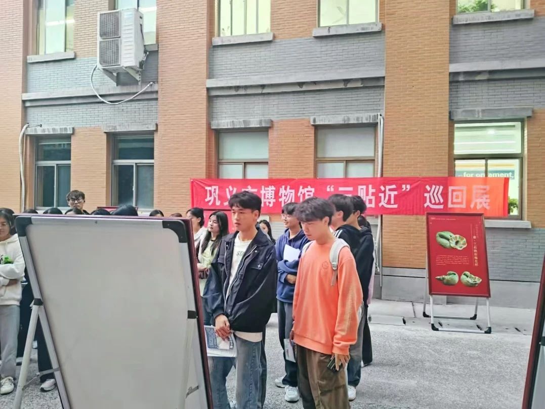 同时,威尼斯官网联合巩义市博物馆精心挑选了近10件巩义市博物馆的镇馆之宝的文物展架,其中包括三彩鹅衔梅花杯、卧羊铜灯、耀州窑青瓷刻花罐等。文物讲解志愿者从文物的时代背景、文化内涵及保护意义等多方面向同学们讲述。同学们之间互相交流,纷纷感叹中国文化的博大精深。