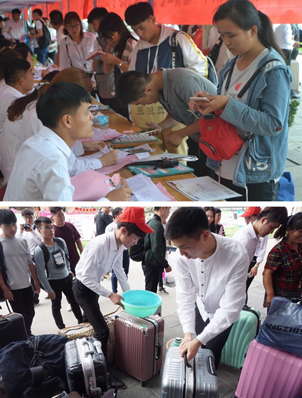 信工系迎新接待点设在三号教学楼前,我们通过拉横幅、悬挂指示标语等方式指引新生的到来。在接待点的对面,三块偌大的展板简介了我系的师资力量、辉煌历史以及新生入学报名程序。身着统一服装的助理辅导员及学生会成员热情迎接新生和家长,主动搬运行李,耐心讲解报到流程,解答新生疑惑,正是这些暖心的举动让17级新生感受到信工系大家庭的温暖。迎新人员热情接待了陆续到来的“小石器”们,一张张热情的笑脸、一句句亲切的问候、一项项贴心的服务,按照展板上的迎新程序,迎新工作如火如荼的开展着,到处都是忙碌的身影。学长、学姐们主动帮着新生拎行李,他们不厌其烦的回答着新生和家长提出的各种问题,一路谈笑风生,放眼望去,整个场面人头攒动、井然有序,成为迎新工作中的一道亮丽风景线。报到处的程序结束后,宿舍的迎新接待同样井井有条,我们的迎新人员负责将每名到来的新生及家长送到宿舍,安置之后离开。我系党员发扬团结你我,为人民服务的精神,在迎新工作中冲在排头,为家长和新生排疑解难,助力新生融入大学生活,发挥党员先锋作用。
