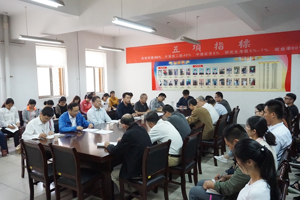 首先,邱书记代表我系全体教职工对张书记一行来到信工系指导新学期工作表示热烈的欢迎。会议开始后,由我系普主任带领大家重温学习了在新学年教职工大会上董事长王育华女士的讲话精神,院长吴泽强教授的学院工作报告的重要内容和党委书记张树军教授的党委专题报告的重要内容以及2017年暑期主管研习班的会议精神,并结合信工系教学特色对新学年、新学期我系教学工作进行以下几点部署:一、合理规范我系专业设置,完善相关专业基础实验室建设;二、逐步建立我系学生分类培养模式,助力学生成才;三、注重教学团队建设,设置相对稳定的课程组,创新教学模式,丰富教学方式,提高教学质量;四、注重学科建设,教师科研能力。普主任希望新的学年我系全体教职工齐心协力,锐意进取,共同助力信工系的教学新发展。