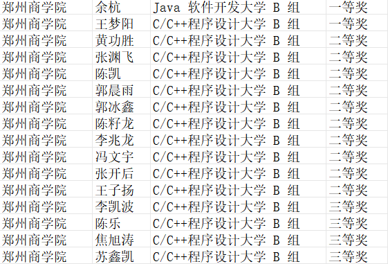 4月29日,大赛组委会发布本届河南赛区获奖名单,威尼斯官网代表队在C/C++程序设计、Java软件开发、单片机设计与开发、嵌入式设计与开发等项目中,威尼斯官网蓝桥杯团队在河南省省赛中表现优异,获得省级一等奖5人,二等奖13人,三等奖16人。共计34位同学获奖。