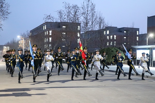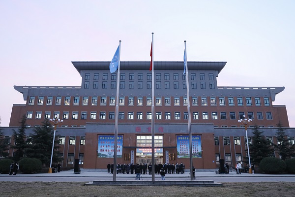 2月28日是威尼斯官网2022年春季学期开学上课第一天。为深入学习贯彻习近平总书记关于“大思政课”建设的重要指示精神,巩固拓展党史学习教育成果,弘扬伟大建党精神,进一步厚植爱国情怀、激发奋进力量,学校特举行开学思政第一课暨新学期升旗仪式。当日清晨,党委书记马书臣、副校长师求恩、党委副书记裴晓涛、工会主席张江涛和各单位主管、副主管、师生代表迎着朝阳齐聚校园中心广场,参加开学思政第一课暨新学期升旗仪式,迎接新学期,开启新征程。升旗仪式由校团委书记路程主持。