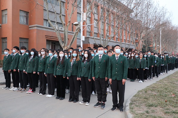 学生代表、工商学院赵海青同学向全体同学发起倡议:一要遵规守纪,规范行为。遵守学校疫情防控常态化要求,遵守校规校纪,规范自身行为;二要积极进取,刻苦学习。努力提高自己的专业知识水平,独立思考、虚心请教、奋发图强;三要爱国爱校,奋勇拼搏。认真践行“勤俭 朴实 自力 更生”的校训,在校园生活中提高自己、充实自己。