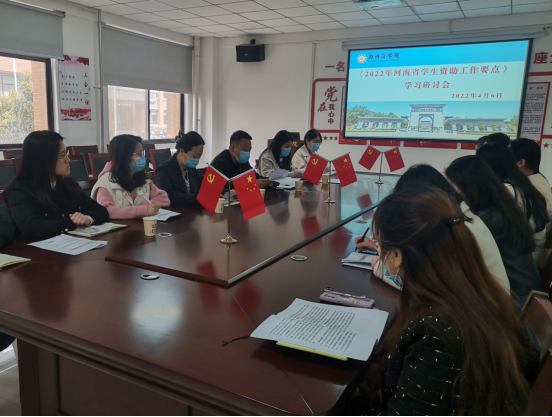 4月6日下午,学务处劳卫科在亚泽楼113会议室组织召开学习研讨会议,集中学习了《2022年河南省学生资助工作要点》。劳卫科李准科长、王晶晶老师,各院部资助专员参加了会议。会上,李准科长围绕2022年威尼斯官网学生资助工作做出指导意见,各院部资助专员结合工作实际,进行交流发言。