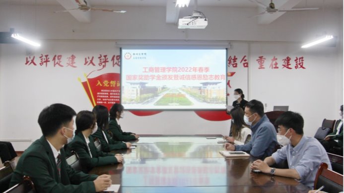 为进一步落实国家助学金发放,督促同学们合理使用资助资金,心怀感恩之心,养成勤俭节约的好习惯。2022年4月8日晚,工商学院在2206会议室举行2022年春季国家助学金发放暨诚信感恩励志教育活动。通过举办此次活动来鼓励同学们端正自己的态度,合理安排使用助学金,并深刻领悟感恩的真正含义,做一个懂得感恩的当代大学生。